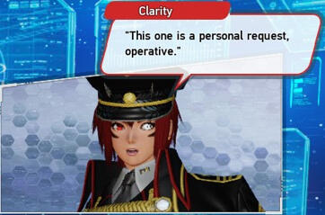 "Greetings, operative.""A majority of communications officers stay behind in Central City, and lend a hand to ARKS operatives from behind the safety of sturdy walls. Not me. I can go out onto the field with you, and put up a good fight without slowing you down. Sometimes though, I don't get enough action. Which leads me to the reason behind this request.""I'm concerned I won't perform at my best when I'm out and about, due to nature of my role as a comms officer. In order to stay in top form, I propose we have a spar right here in Central City. With the necessary precautions in place to keep bystanders safe from harm, we could put on a show that'll not only benefit you and I, but the citizens of the city, too.""Let's show the people of Central City we're strong enough to protect them as well as ourselves, operative."REWARD: 100000N